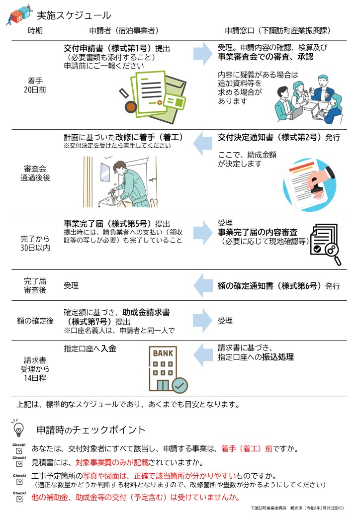 交付には条件がありますので、詳しくは「下諏訪町観光宿泊施設助成金交付要綱(140KB)(PDF)」をご覧ください。