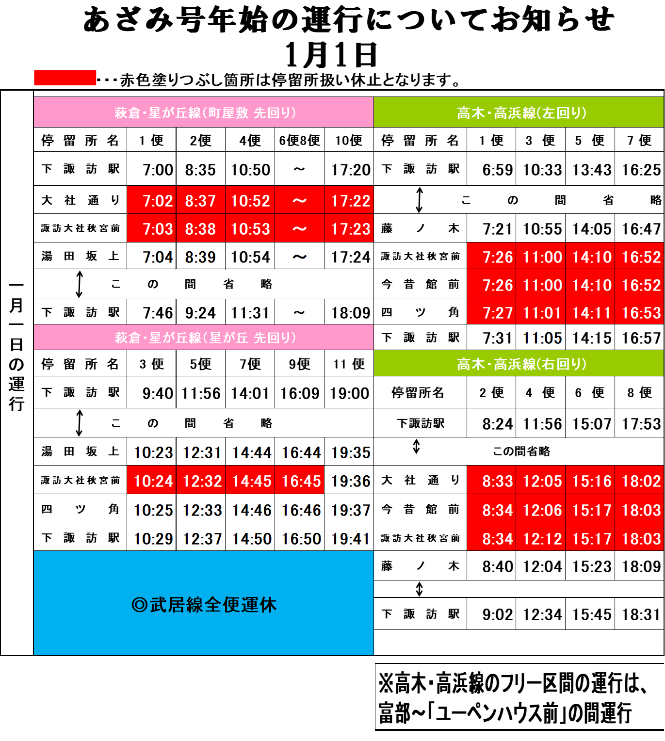 年末年始の秋宮周辺交通規制に伴う町内循環バス「あざみ号」の運行について