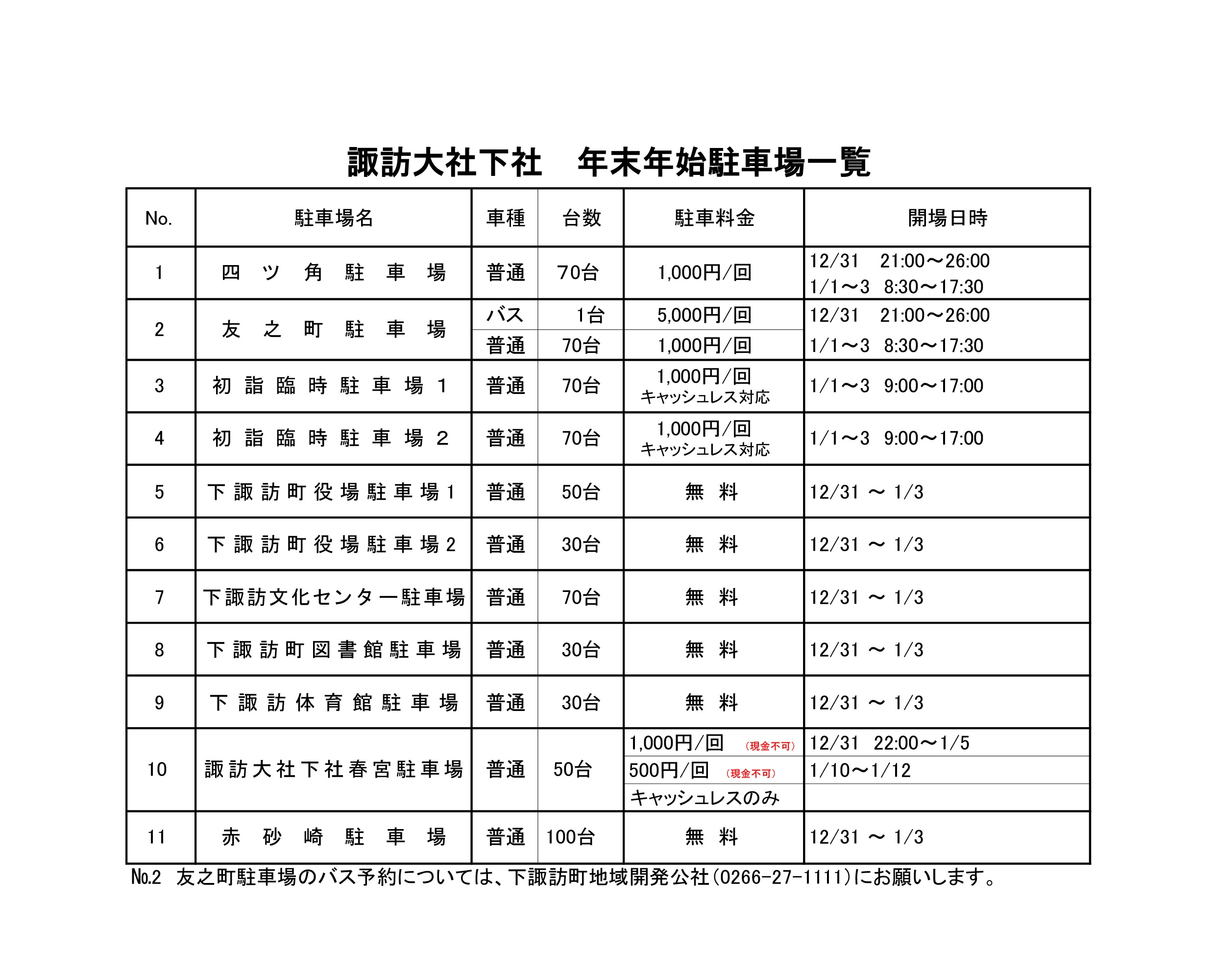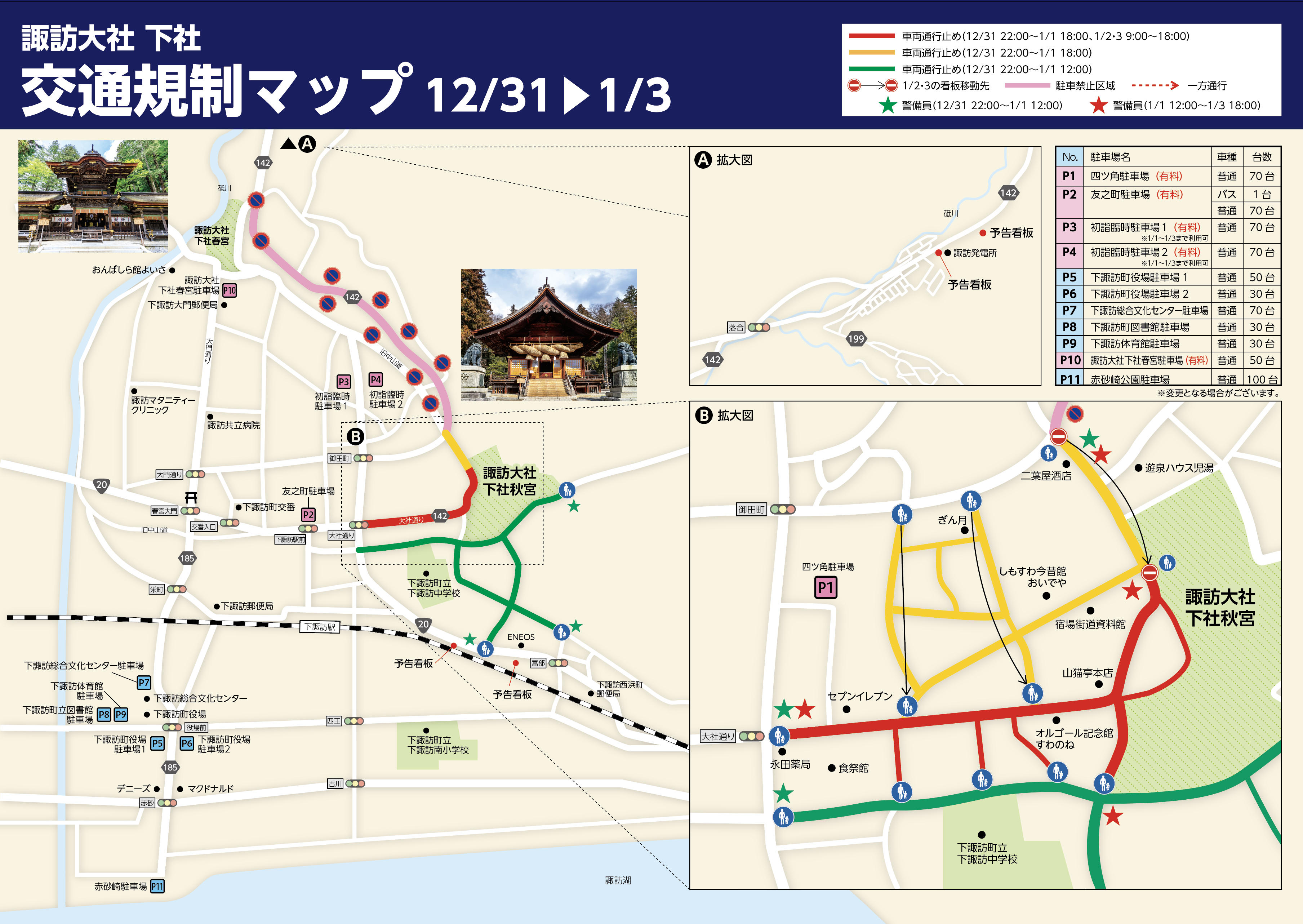 諏訪大社下社初詣交通規制・臨時駐車場について