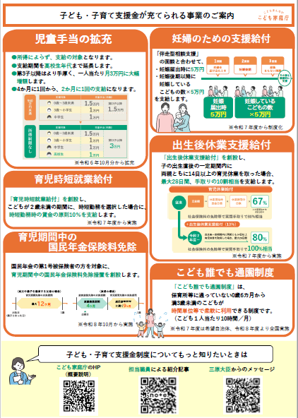詳しい内容は、リーフレットをご覧いただくか、こども家庭庁HP(外部サイトへ繋がります)をご確認ください。